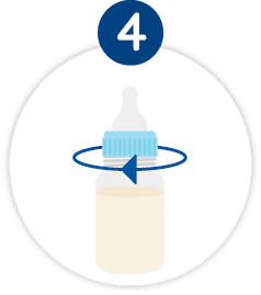 بطری تغذیه را با استفاده از درپوش پلاستیکی ببندید و خوب تکان دهید تا کاملا حل شود.