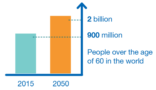 امروزه، برای اولین بار در تاریخ، اکثر مردم جهان می توانند انتظار داشته باشند که تا دهه شصت و بعد از آن زندگی کنند. از سال 2020، تعداد افراد 65 سال و بالاتر از کودکان کمتر از 54 سال بیشتر شده است. پیش بینی می شود تا سال 2050، جمعیت 60 ساله و بالاتر جهان به 2 میلیارد نفر برسد که این رقم در سال 2015، 900 میلیون نفر بود.